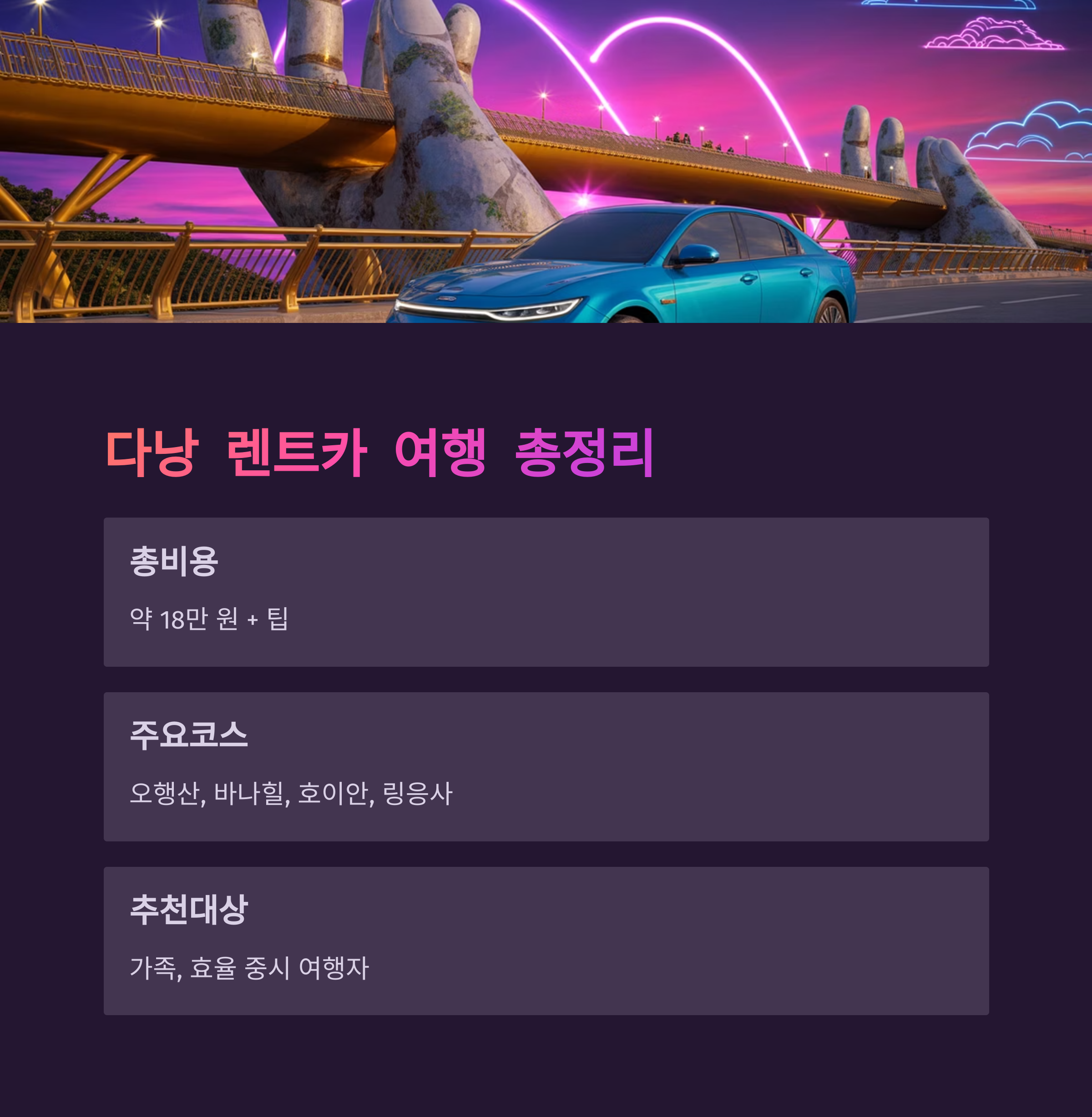 직접 다낭에서 차량 렌트 후 다녀온 여행 코스, 렌트 방식, 비용 정산까지 자세히 공유드립니다.
