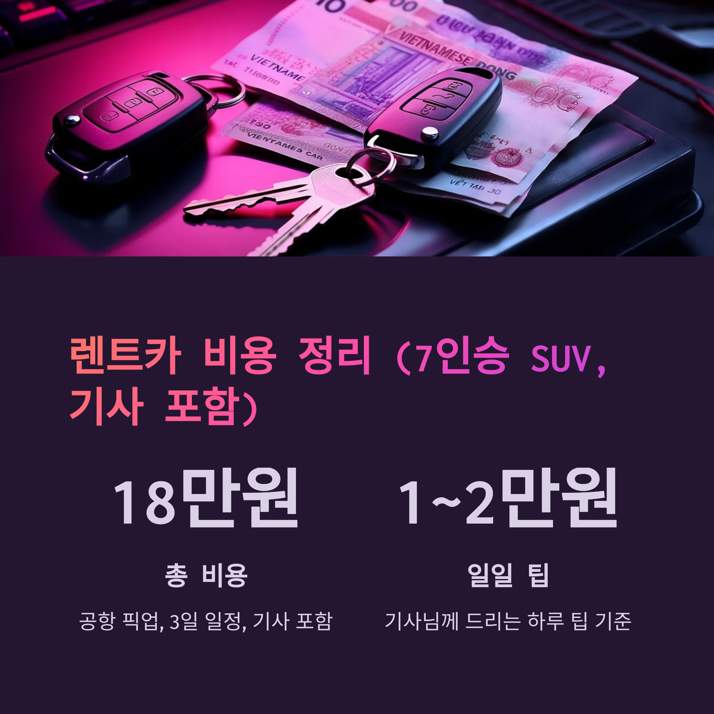 별도로 기사님 팁은 하루 기준 1~2만 원 정도로 책정했습니다.
